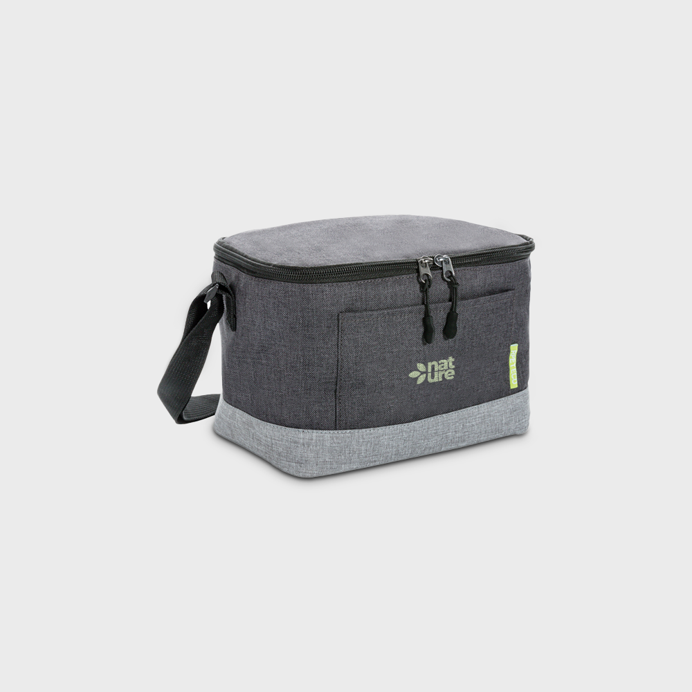 Make every outing eco-friendly with this spacious cooler bag. Perfect for picnics or outings, it has enough space for six cans along with a handy front pocket for essentials. Carry it with ease using the shoulder strap. Crafted from sustainable RPET, this bag is not only functional but environmentally conscious. Ideal for keeping your drinks and snacks cool while being kind to the planet.
