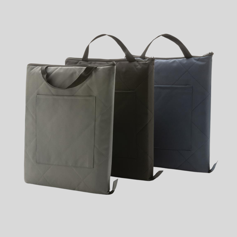 A beautiful quilted picnic blanket made from 100% recycled materials. Features a large front pocket for carrying essentials and measures 145 x 130 cm when unfolded.