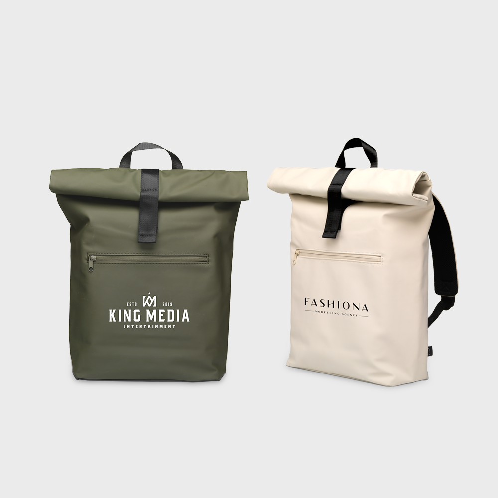 Practical, sturdy and spacious 'roll-top' backpack with an extra zip pocket on the front. It features a roll closure with Velcro and a zipper. The outer PU material is water-repellent and the lining is made from recycled PET. Inside, there's a special compartment for your laptop or tablet and several pockets for organised storage. An elastic band keeps your drinking bottle upright. Adjustable back and shoulder straps with soft foam offer comfort. Ideal for daily use, perfect for school or work.