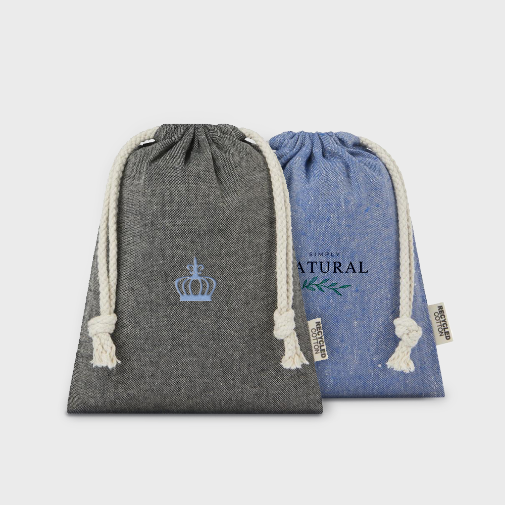 Wrap your gifts in style with this sustainable delight. Made from recycled cotton, it features a convenient drawstring for easy closure. Perfect for any occasion, whether you're wrapping presents or storing keepsakes. Please note that there may be slight colour variations due to its unique crafting process.