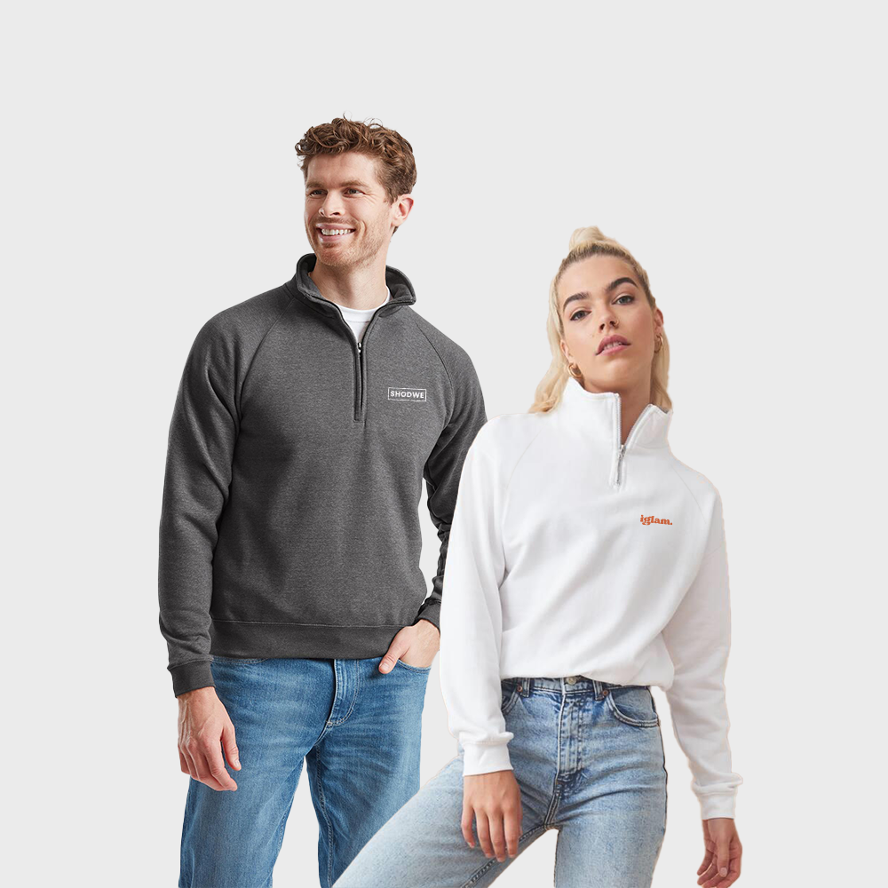 Introducing our Premium Zip-Neck Sweat , the perfect canvas for your custom print! Made with high quality materials, our jumper offers both comfort and style. Whether you're looking to create custom merchandise for your brand, promote an event, showcase your team's logo, or even to give away for your customers, our jumper is the ideal choice.