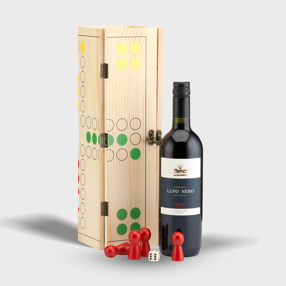 A unique gift that’s both a wine box and a board game. This set includes colourful wooden pieces in a sturdy canvas bag. Perfect for a fun games night, just open the box for a full board game experience. Fits one bottle of wine .