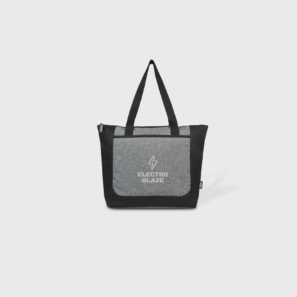 Keep your style eco-friendly with this two-tone zippered tote. Crafted from recycled materials, it's the ultimate shopping companion. Features a handy front pocket for quick access and a secure zippered compartment for essentials. Ditch the plastic and upgrade to a more sustainable choice. This tote is robust and makes shopping a breeze.