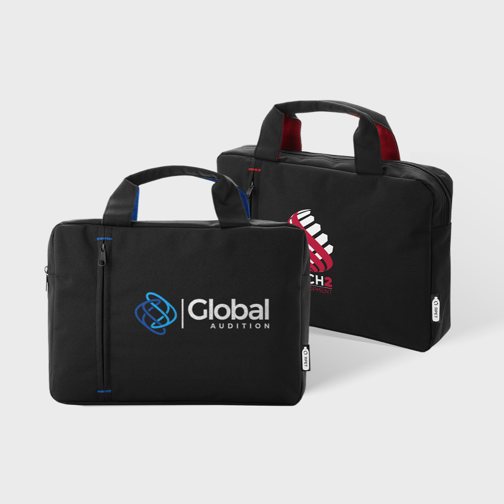 Introducing our eco-conscious Conference Bag, crafted from recycled PET plastic. It boasts a zippered main compartment and a convenient front zipper pocket. The reinforced top carry handles ensure durability, while the trendy color contrast elements add a contemporary flair.<br>