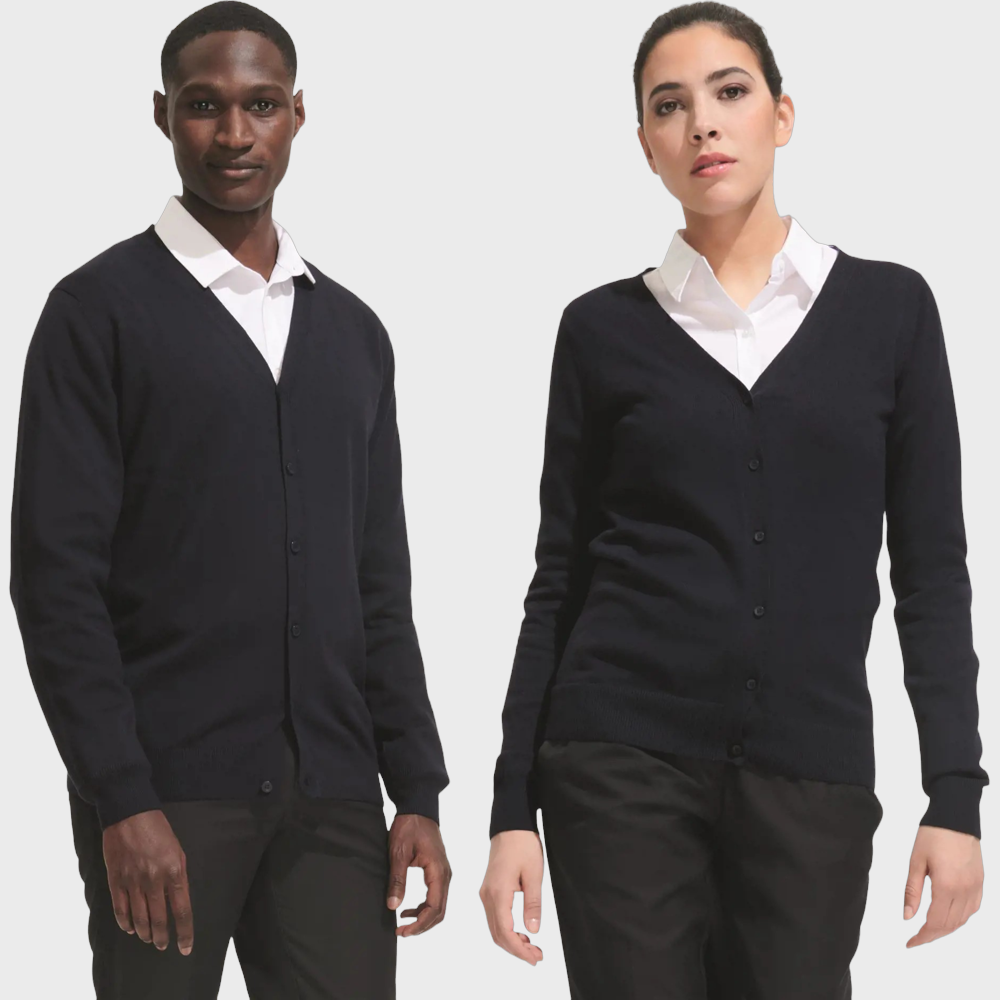 Stay comfy with set-in sleeves and elastane rib on hem and cuffs. It features a tone-on-tone knit placket with buttons and fully fashioned armholes. Keep a spare button handy on the inside seam. Perfect for any occasion. Start your custom print today!