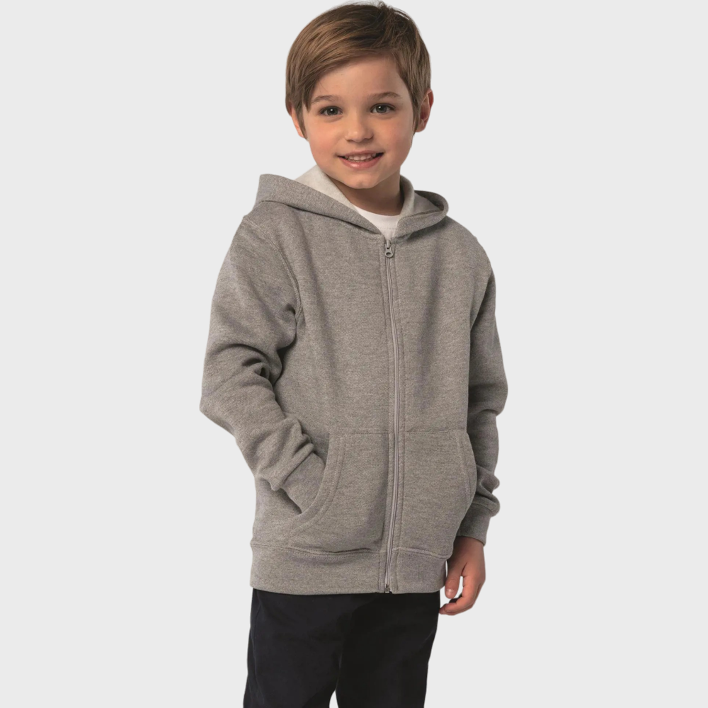 Stay cosy with this brushed fleece. Features set-in sleeves and two handy kangaroo pockets. Ideal for kids who love comfort and style. Get your design on this fleece today!