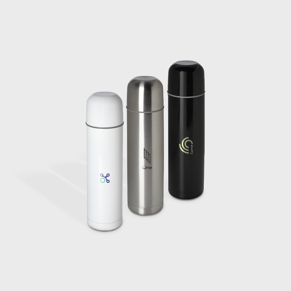 Stay refreshed on the go with this double-walled insulated flask, complete with a handy cup lid. It features a user-friendly push-button spout that seals automatically when secured. Ideal for hot or cold beverages, it's perfect for daily use. Plus, it's crafted from eco-friendly recycled stainless steel, making it a sustainable choice.
