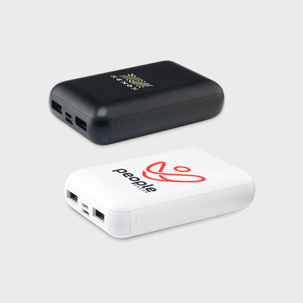 Meet our customisable pocket power bank – a compact, powerful wireless charger made of recycled ABS. With a 10,000 mAh battery, it's small yet mighty, fitting snugly in your pocket for convenient portability. Charge multiple devices via 2 USB ports or use the 5W wireless function . Features indicator lights, an on/off button, and includes a Type-C cable and USB-C connector. Your ultimate go-to for on-the-go power!